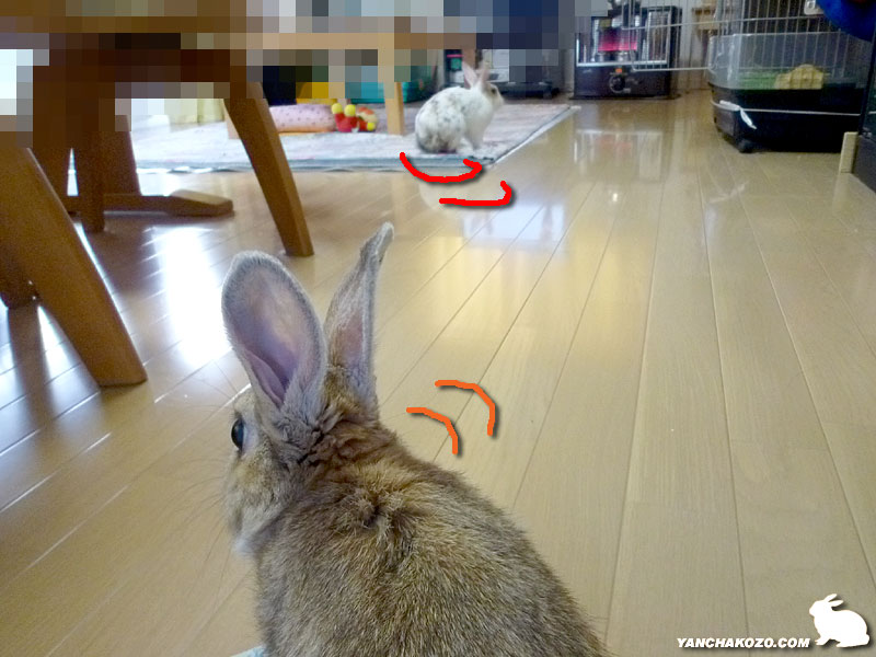 お互い呼び合い、お互いの存在は気が付いてるものの、反対を向くうさぎ達。