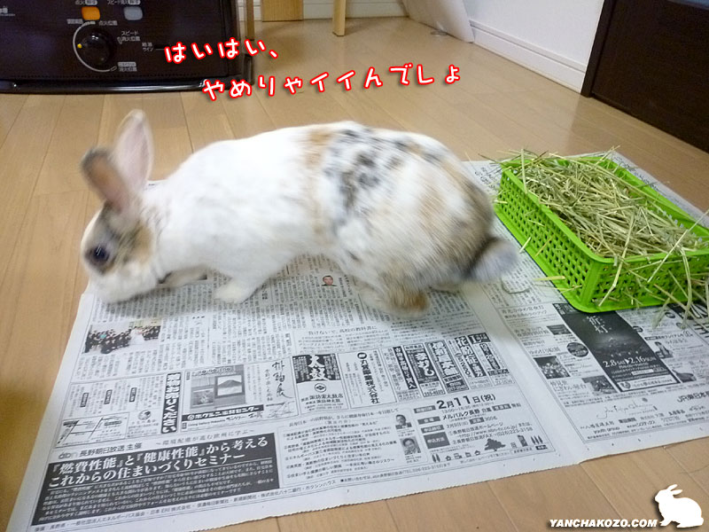 一部始終を持ち主に見られ、注意されたうさぎ。