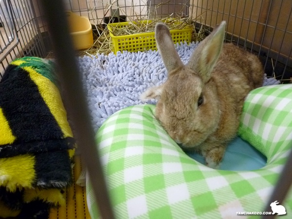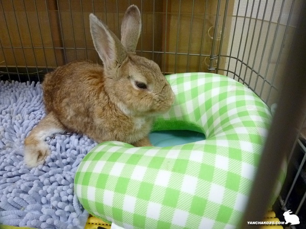 U字型クッションにもすっかり慣れ、食べる時以外は、ほとんどココにいます。