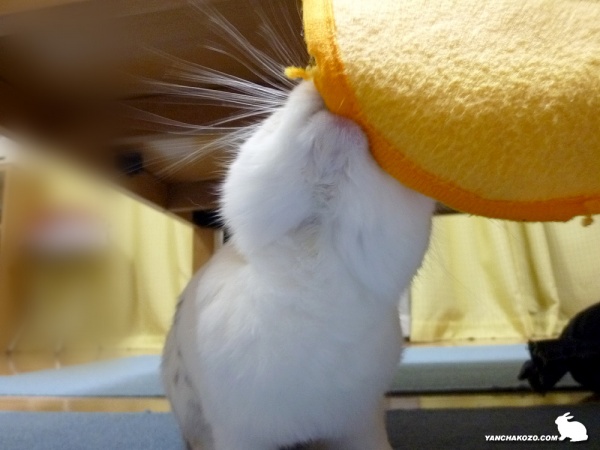 うさぎが興味を示す ヒラヒラ~