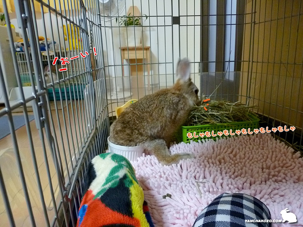 これでちょこちゃんもゆっくり時間を掛けて牧草食べれるね。