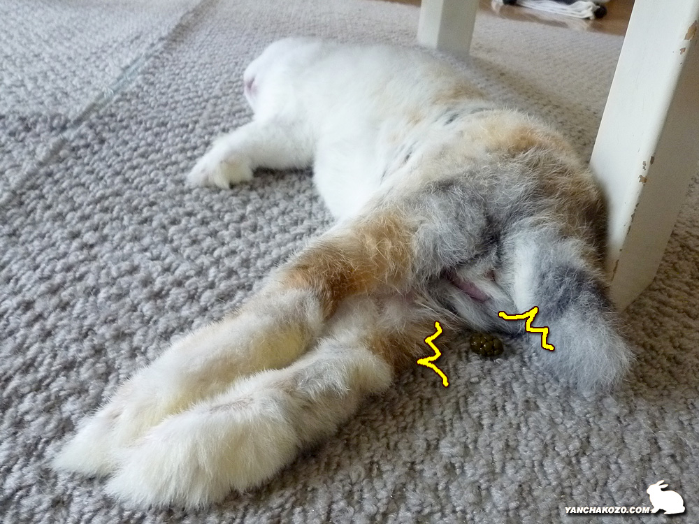 ピヨヨ~ンと伸びてから、「もうだめぇ…」と、意識を失ううさぎ。