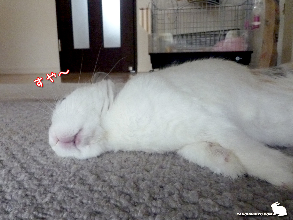 熟睡するうさぎ あらら~…