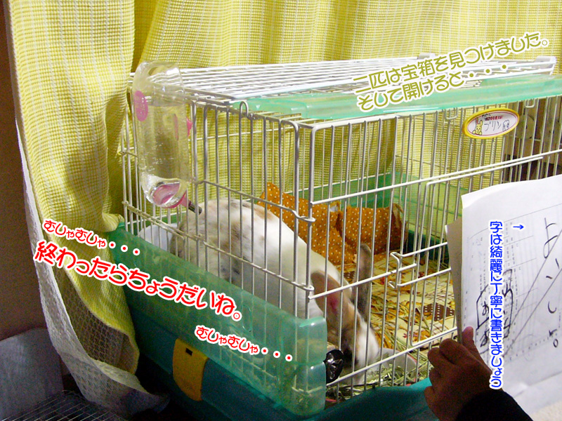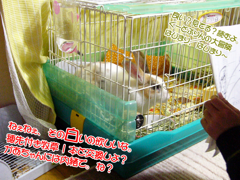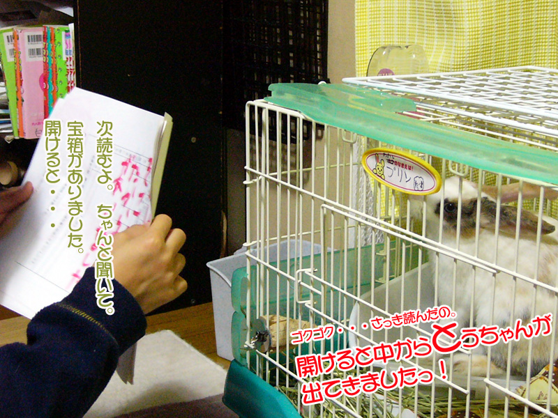素直なK君はケージの前に正座して読み始めました。