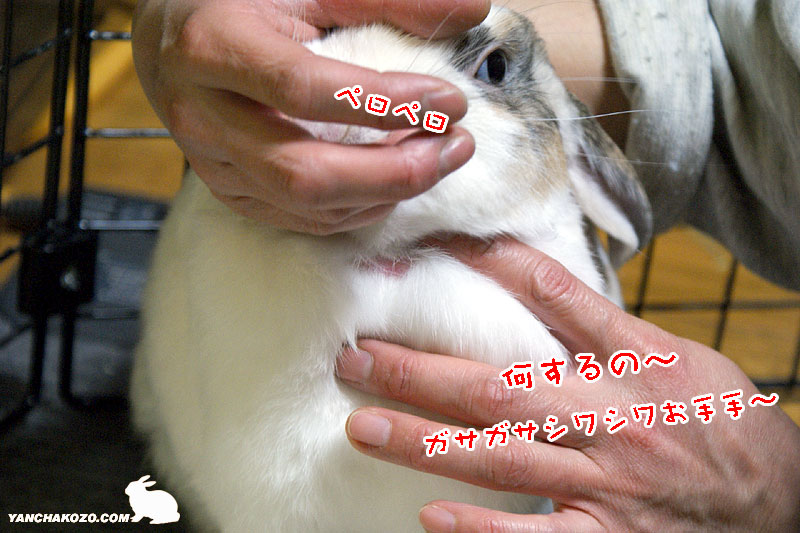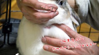 顎を引いて、臭腺辺りをペロペロ・・・って感じでしょうか。