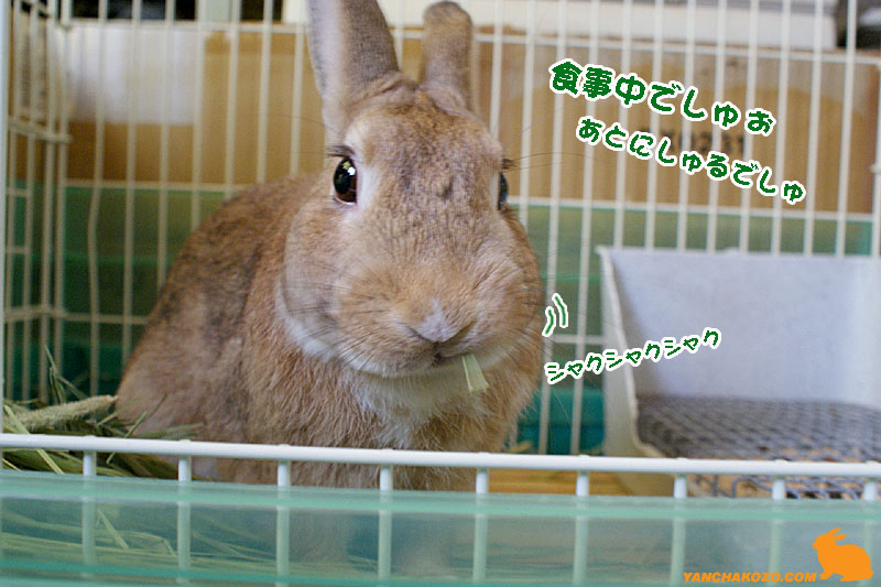 美味しそうに(牧草大好きだから、多分、美味しいんだろう)食べてます。