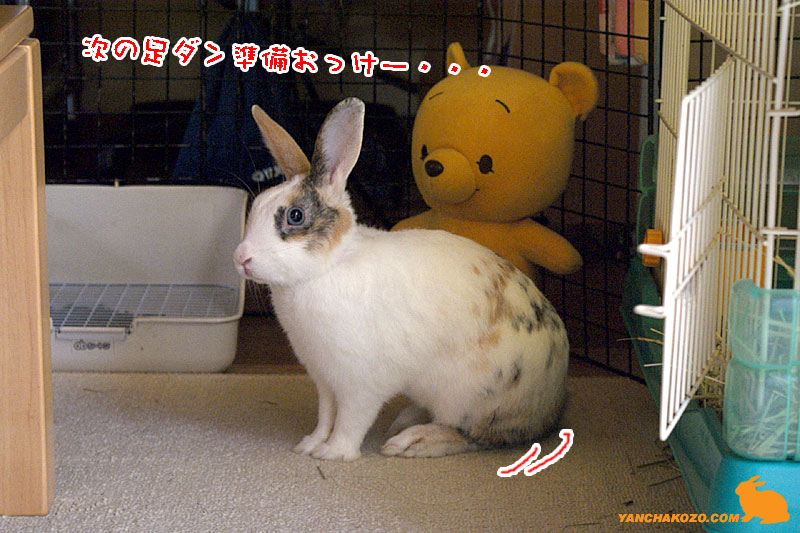即体勢を直し(お座り体勢)、次の足ダン準備