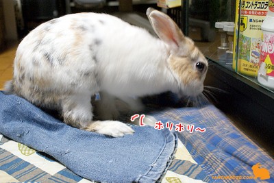 掘って困るから、大好きな穴開きデニムを敷く事に・・・