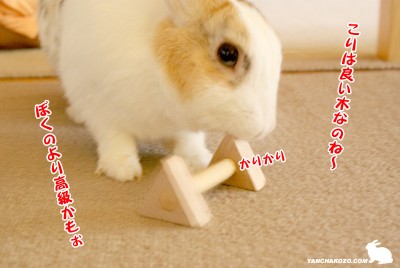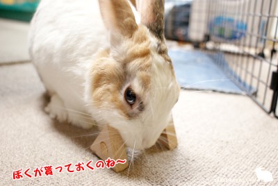 くーちゃんの齧り木には、うさぎの歯型がいっぱい