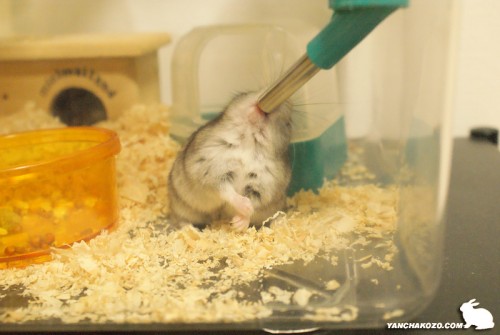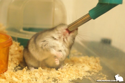 小さい体でウィッシュ体勢でドリンクタイム(笑)