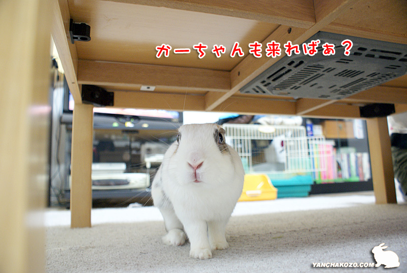 ママさんの為にテーブルの下から出てきてあげて〜(;∇;)